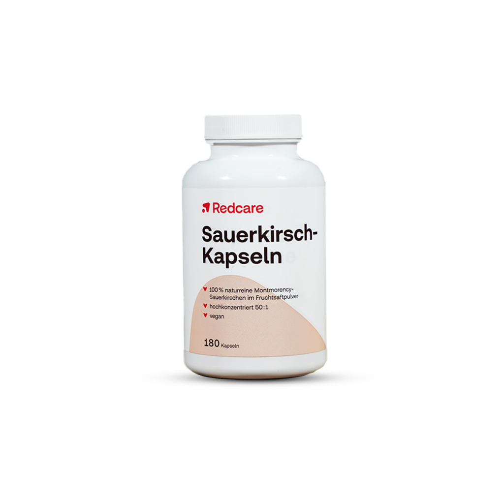 Die Sauerkirsch-Kapseln von Redcare, einer Marke der Shop-Apotheke, konnten im Vergleich nicht überzeugen. Sie fallen vor allem durch den Zusatz von Magnesiumsalzen auf, was sich auch im sensorischen Profil widerspiegelt. Zusätzlich hat das Pulver einen ungewöhnlich süßen Geschmack, als wäre Zucker zugesetzt. Kunden können auch keine Herstellernachweise zu Herkunft oder Qualität einsehen. Als Rohstoff dient Kirschsaft-Pulver, sodass die wertvollen Inhaltsstoffe der Sauerkirsch-Schale im Endprodukt fehlen. Zudem ist die Kapsel deutlich größer als die der Konkurrenten, was manchen Menschen die Einnahme erschweren wird. Daher leider – keine Kaufempfehlung.